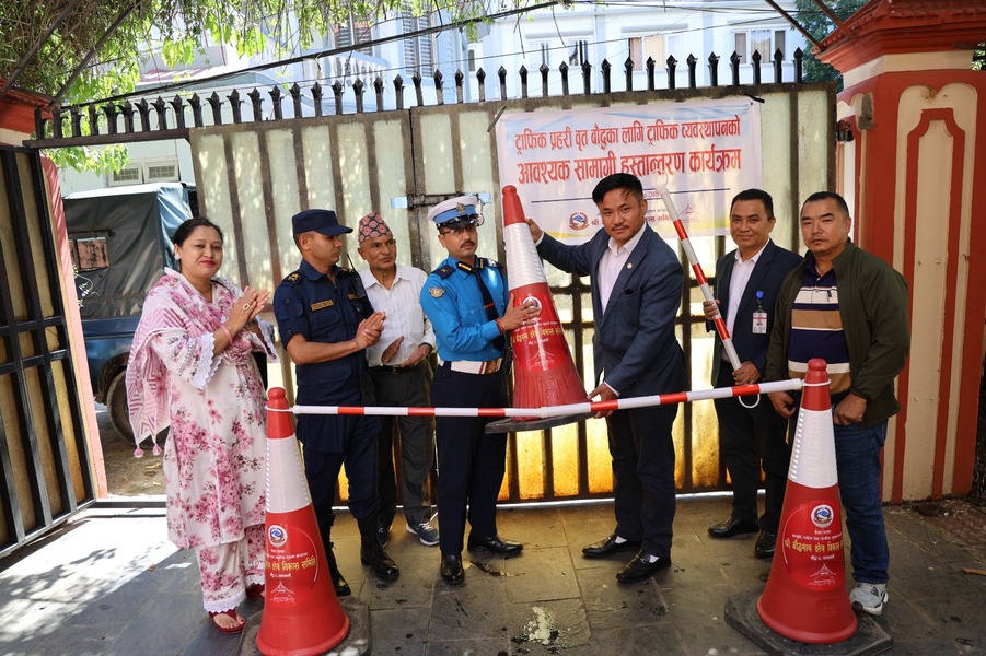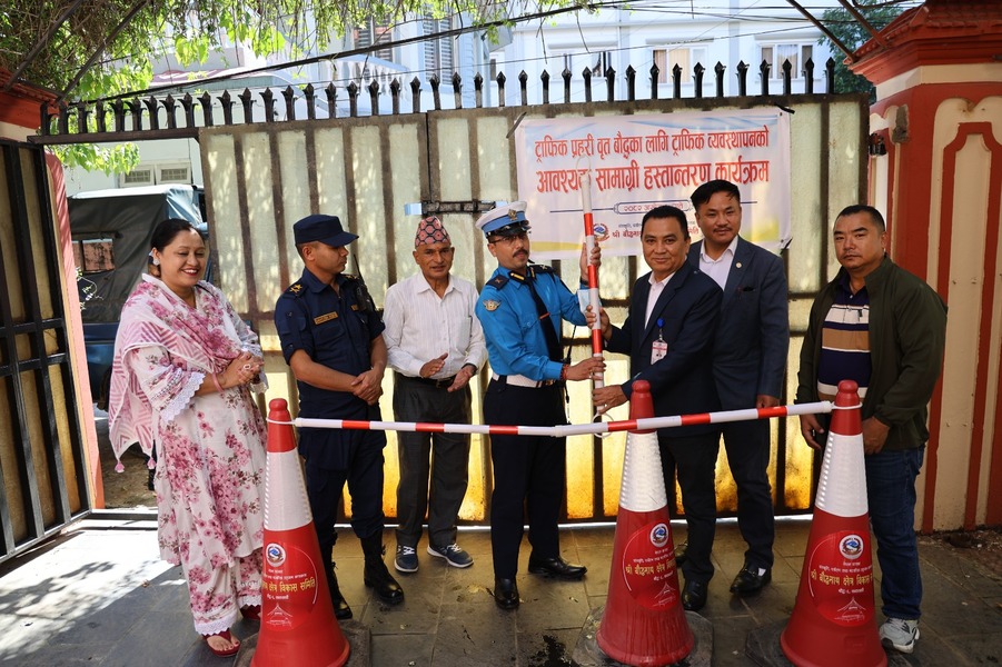 Boudhanath Area Development Committee provided 200 traffic cones to the Traffic Police.”